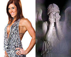 Why?: As one of the top heel Knockouts in TNA, Madison is well practiced at attacking her enemies when their backs are turned. The “Weeping Angel” Doctor Who aliens, who appear to be innocuous angel statues, come to life and attack their victims when they’re not looking at them. So, if you turn away or blink, you’re dead. The same could be said for Madison’s opponents, though we’d substitute “hit with a loaded glove” for “dead”. She may be a “killer Queen”, but not that killer.