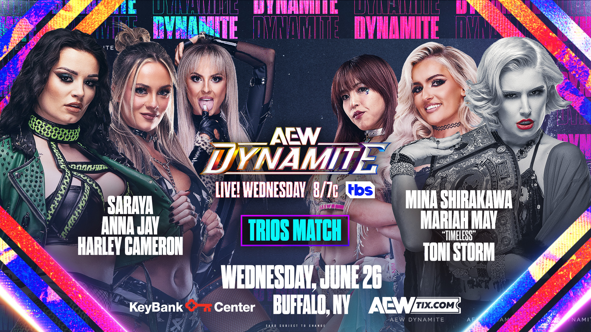 A trios match has been added to AEW Dynamite this Wednesday on June 25. The Outcasts of Saraya, Harley Cameron, and Anna Jay will be taking on Toni Storm, Mariah May and Mina Shirakawa. Can Storm and Shirakawa co-exist in this match prior to their title bout at Forbidden Door?