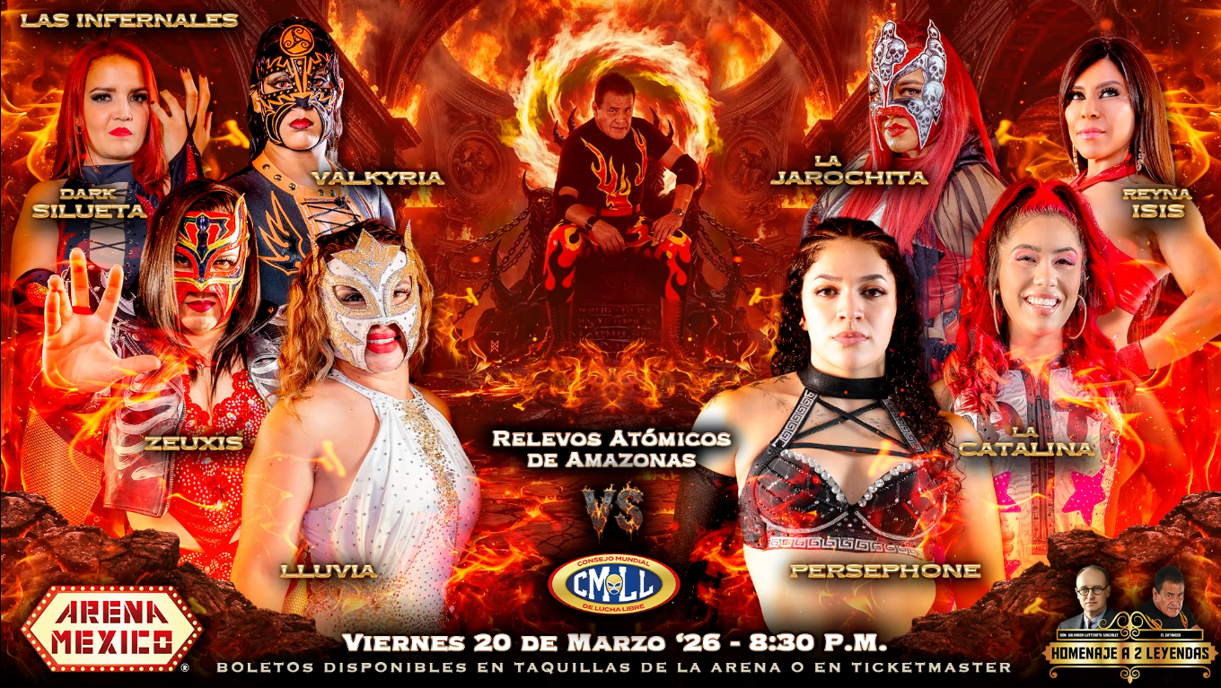 The same night Reyna Isis returned alongside former rival La Jarochita, both were announced as tag partners in a eight women tag match, they will be joined by La Catalina and the CMLL World Women’s Champion Persephone to take on Las Infernales; Dark Silueta, Zeuxis, Lluvia and Valkyria.