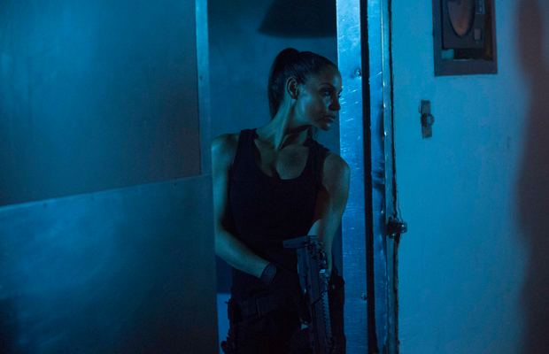 The action movie – premiering September 26th at Fantastic Fest in Austin, Texas – sees Trish play the lone female officer in a group fighting to overcome a siege by armed mercenaries.