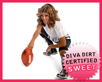 Grade: Sweet. Taking inspiration from the pigskin itself, Michelle’s laced together her top. It looks really cool–both sexy and athletic–in a way that’s not just a girl wearing a sports uniform. She doesn’t look like she’s in Maxim, let’s just say.. The effort is clear, but it’s not in your face. Just the way I like it..