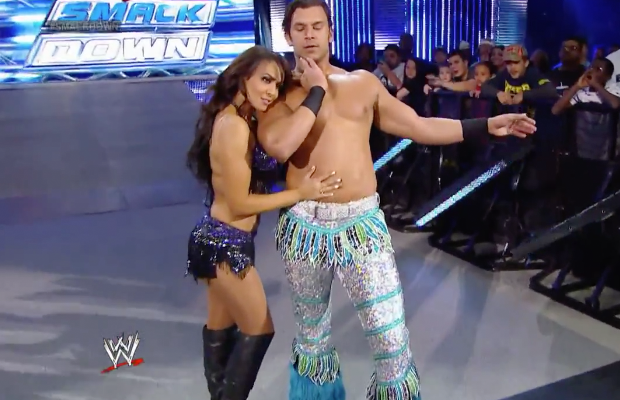 It didn’t take long for Fandango to find a new dancing Diva, though. Tonight, he brought Layla to ringside for his match against Santino Marella, who had Emma in his corner.