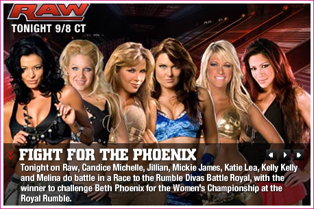 Tonight’s Raw has high stakes as there is a Women’s Championship title shot and a Royal Rumble payday on the line for the six Divas featured above. All six will feature in a battle royal with the winner facing Beth Phoenix for her title at the Rumble. Wasn’t Melina the #1 Contender anyway?