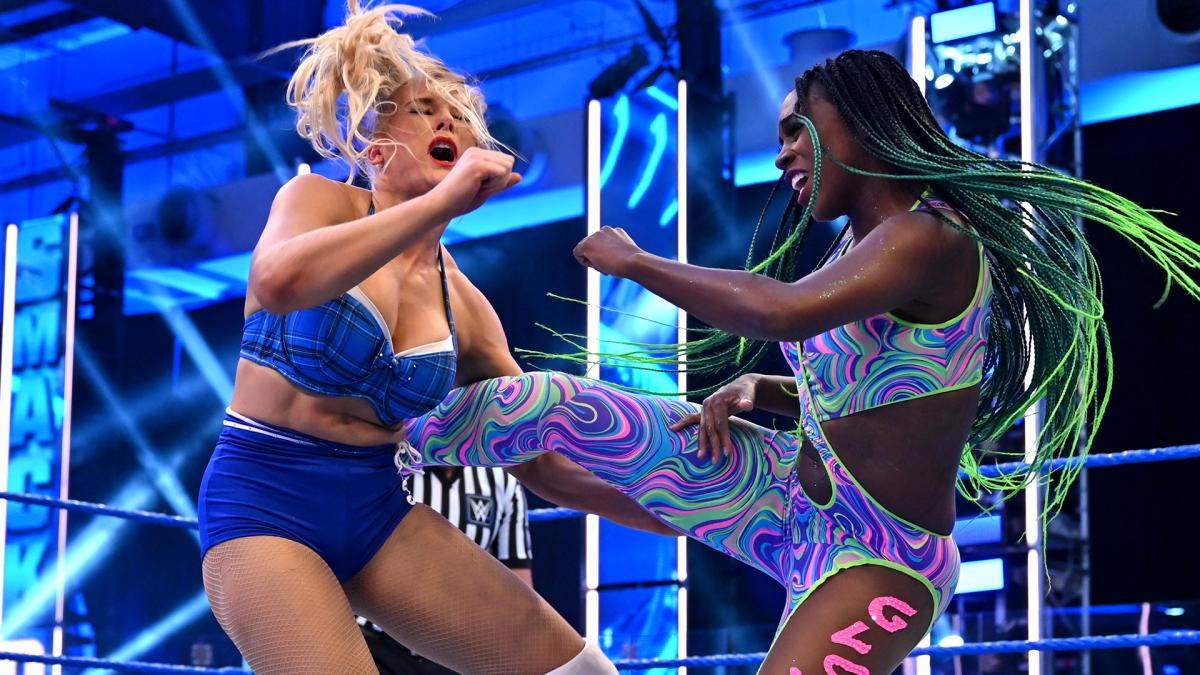 The second match of the night is a follow up from their fight after last week’s Karaoke contest. Naomi battled Lacey Evans. A short match between the two had Naomi start off in control in the early going, but Evfans would quickly take over.