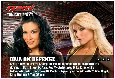 Tonight’s Raw features a pay per view caliber match – Beth Phoenix challenges Melina for the Women’s Championship in a Royal Rumble rematch. I certainly have high hopes and I hope that they pull out all the stops to give these two some prominent ring time and even the ‘big fight’ introductions.