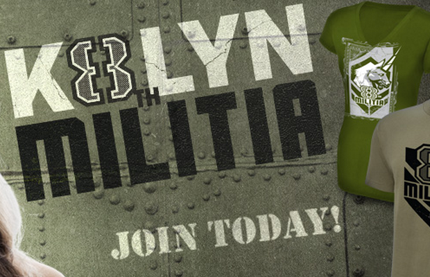 The tees are available in men’s and women’s styles, with the men’s apparel featuring a basic “8th Militia” print, and the women’s style featuring a similar transfer with an added unicorn design.