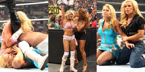 Going into last night’s SummerSlam, the odds favored the bigger, stronger, more powerful Glamazon, Beth Phoenix. Having branded Kelly Kelly a ‘blonde, little bimbo’, Beth had tormented Kelly both mentally and physically over the past couple of weeks — even aligning herself with a fellow powerhouse Diva in Natalya — but once the cameras started rolling, it was Kelly who shocked Beth, Natalya and even the fans by pulling out the victory.