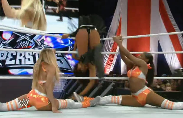 What’s up Diva fans and welcome to this week’s Superstars Redux! We got a double dose of Funkadactyl fierceness on Friday as not only did the girls compete on SmackDown, but they also kicked some arse on Superstars! This week’s Superstars showing, the third in as many weeks, sees Naomi make her third straight appearance on the show. She’s teaming with Cameron to face my favorite tag team ever *sarcasm* Aksana and Alicia Fox, although one good thing about them is together, they can make up some cracking portmanteaus. AKLICIA and FOXANA sound pretty epic. Shame one of them has no character whatsoever and the other crawls around the ring like a toddler who has filled it’s nappy. Anyway, we need to get that image out of our minds, so let’s get right into it! TO THE VIDEO!
