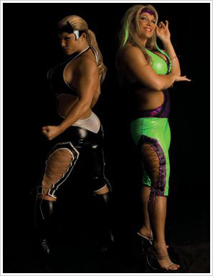 Beth Phoenix seems to be in a “Dark Knight” mood, as she’s again posing with a bit of a Batman theme. This time, in a photoshoot titled “The Two Faces of Beth Phoenix” (which I’m calling “Two-Face” because I know that’s what they’re going for anyways), she’s posing as both a black-suited figure reminiscent of Christian Bale’s caped crusader and a green-and-purple grinning maniac in the vein of Heath Ledger’s celebrated Joker persona. I think it’s pretty cool and inventive, and I can’t blame Beth a bit for letting her fangirl out – I’m pretty crazy about Hulk and Spider-Man, and Melanie loves her some Superman, so we can’t exactly fault her for it! But where’s Two-Face, Beth? Perhaps a charred face would’ve been too much for WWE.com viewers. :P