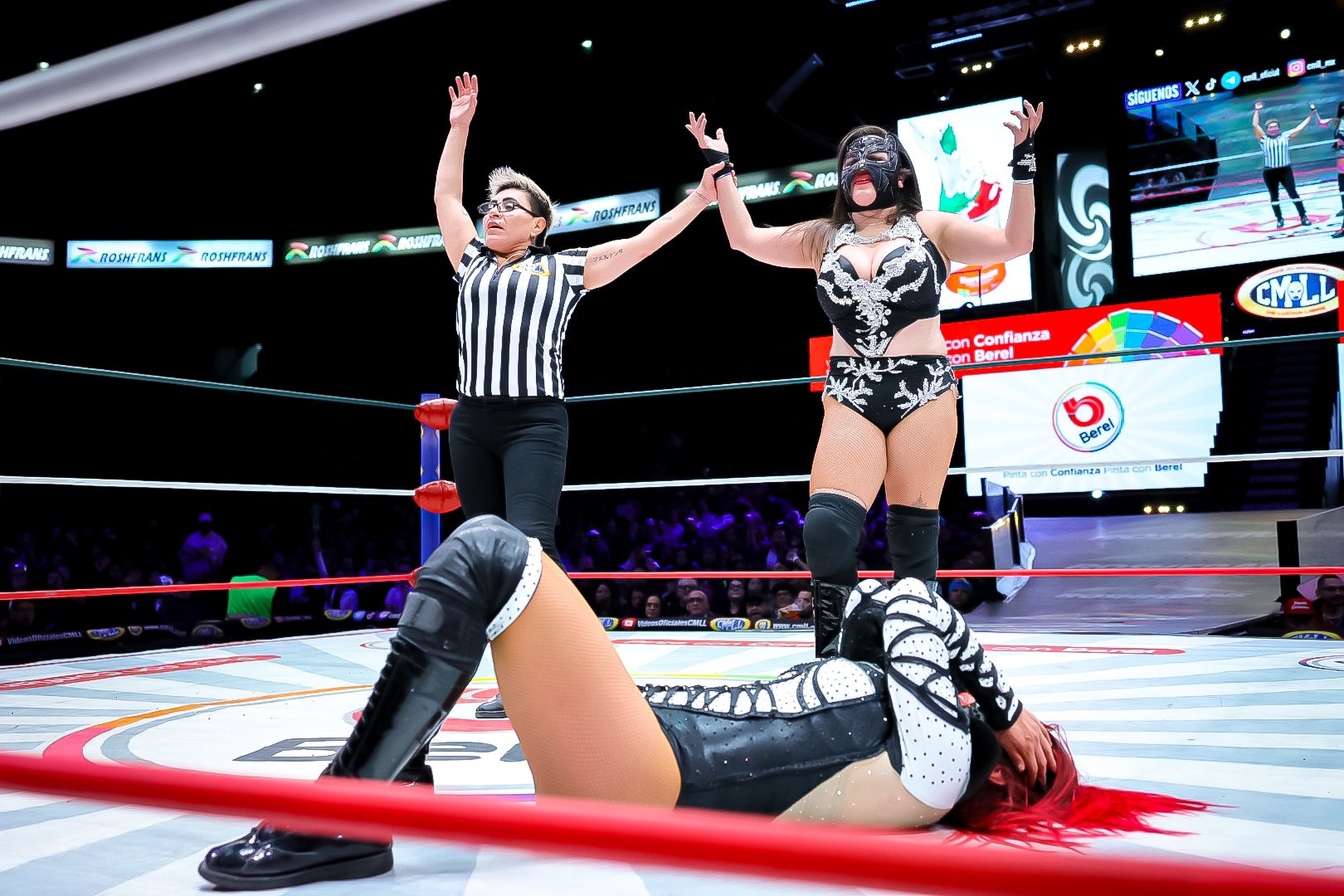 The CMLL Women’s Champion ended up getting the win with her double underhook lifting knee facebreaker.