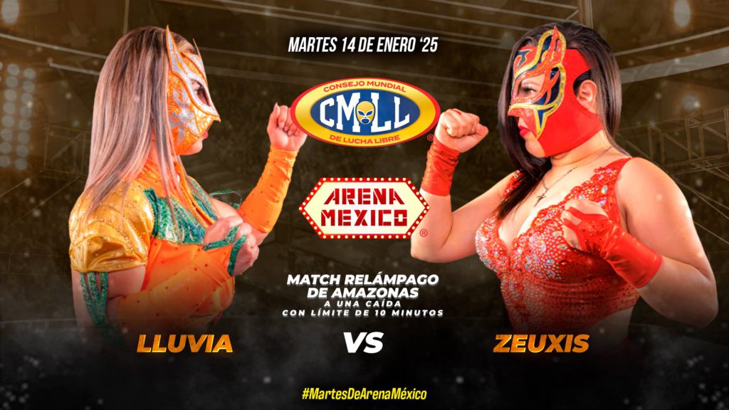 Back to the iconic Arena México, we got a continuation of the rivalry between the current dobule CMLL champion Zeuxis, as she faces la pequeña tentación Lluvia, this time in singles action, in a match relámpago with a ten-minute time limit.